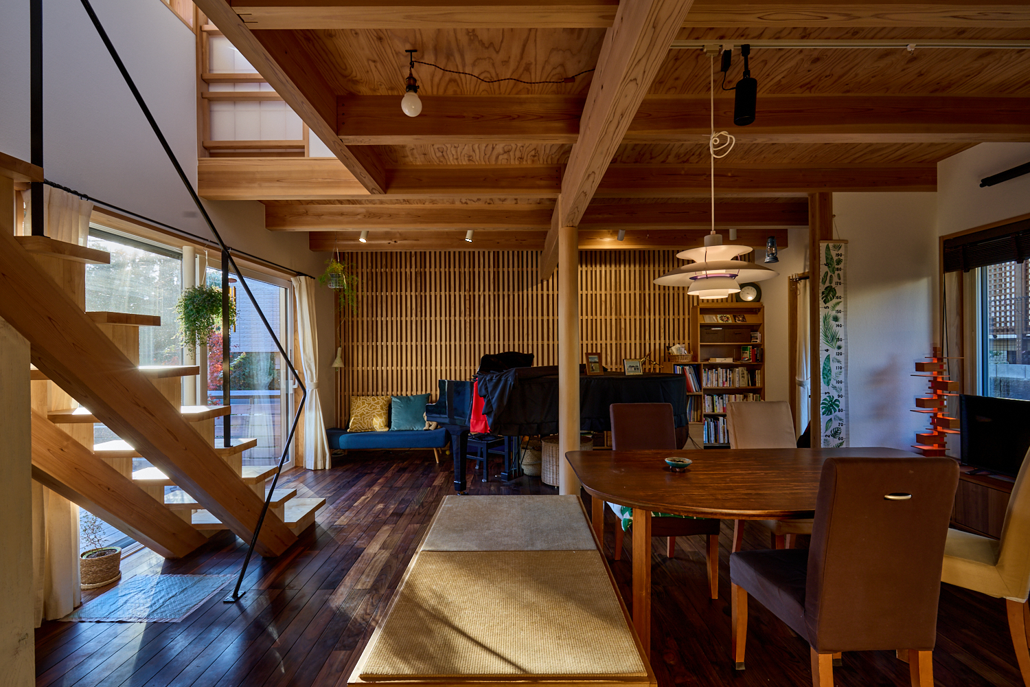 家づくりをしていた時に思い描いていたものを飛び越えて、ピアノのあるリビングを中心に人と人、自然と人をつないでいる。そんな住まいがそこにはありました。
