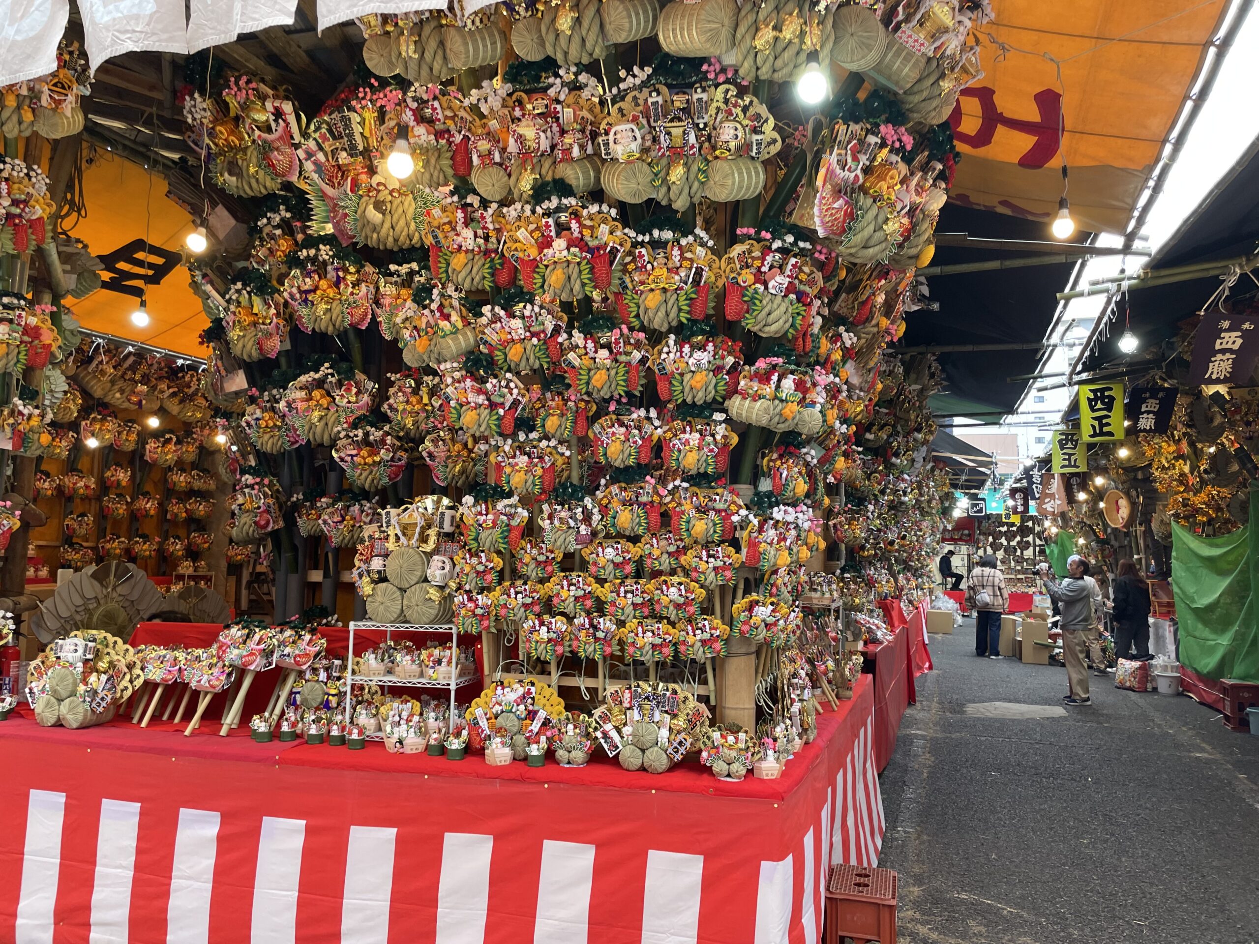 火曜日は休日で人だかりもなく、じっくり見学。建物には味わいがありましたが、やはり舌で味わってみなくては。さて日本橋富沢町にあった元吉原が明暦の大火(1657)で焼失後、わずか半年で浅草の田圃の真っただ中に築かれたのが、新吉原です。敷地は6町規模2万坪で規則的に町分けしてあり、道路だけが往時をしのばせています。日本堤の見返り柳から緩やかな坂を下っていく三曲がりの50間道(極楽とこの世の間が50間)の先に大門が現れます。沿道に「耕書堂」もあったようです。昔の面影は何も残っていません。この後は、弁財天、鳳神社そして樋口一葉ゆかりの龍泉へ向かいましたが、道はぐじゃぐじゃでした。今年は二の酉迄で、訪れたのはその前日だったため的屋のお兄さんが準備の最中で、その心意気は中々のもの。大小、意匠とりどりの熊手が立錐の余地なく飾られていたのは壮観でした。